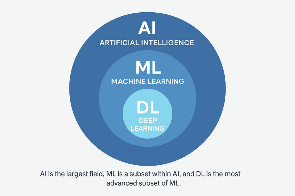 In short: AI is the idea, ML is the method, and DL is the most advanced approach.